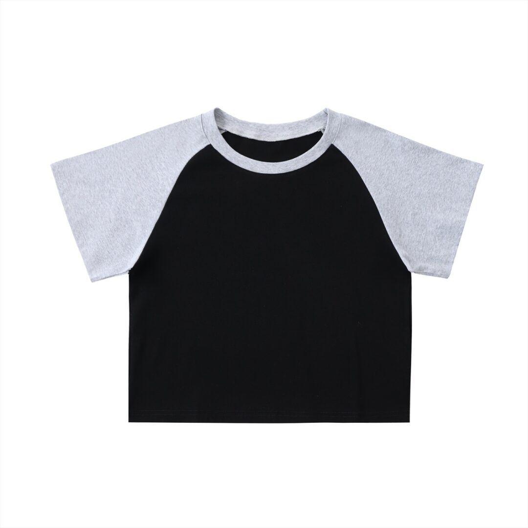 Color-Blocked Raglan Sleeve Crop Top