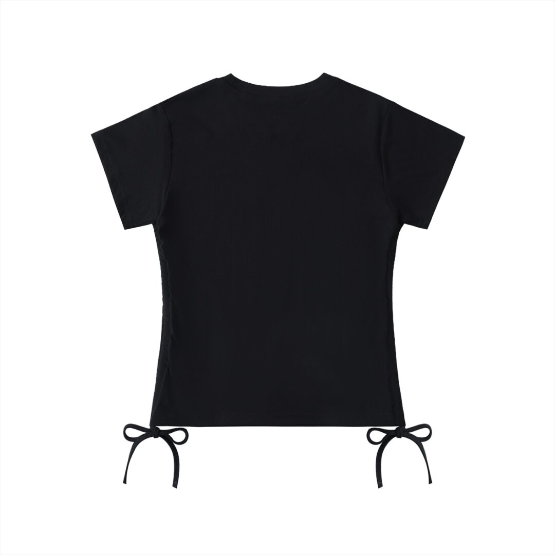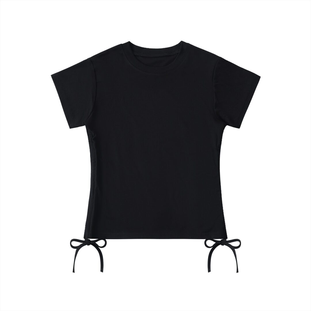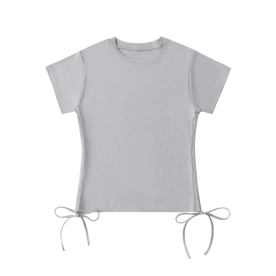 Pull it in for a defined, figure-flattering silhouette. Let it drape loosely for a relaxed, effortless look. The drawstring detail isn’t just functional — it’s the focal point, adding a playful, fashion-forward touch that elevates this piece well beyond a standard basic. The classic round neck and regular short sleeves keep the rest of the design clean and uninterrupted, letting that waist detail do the talking.